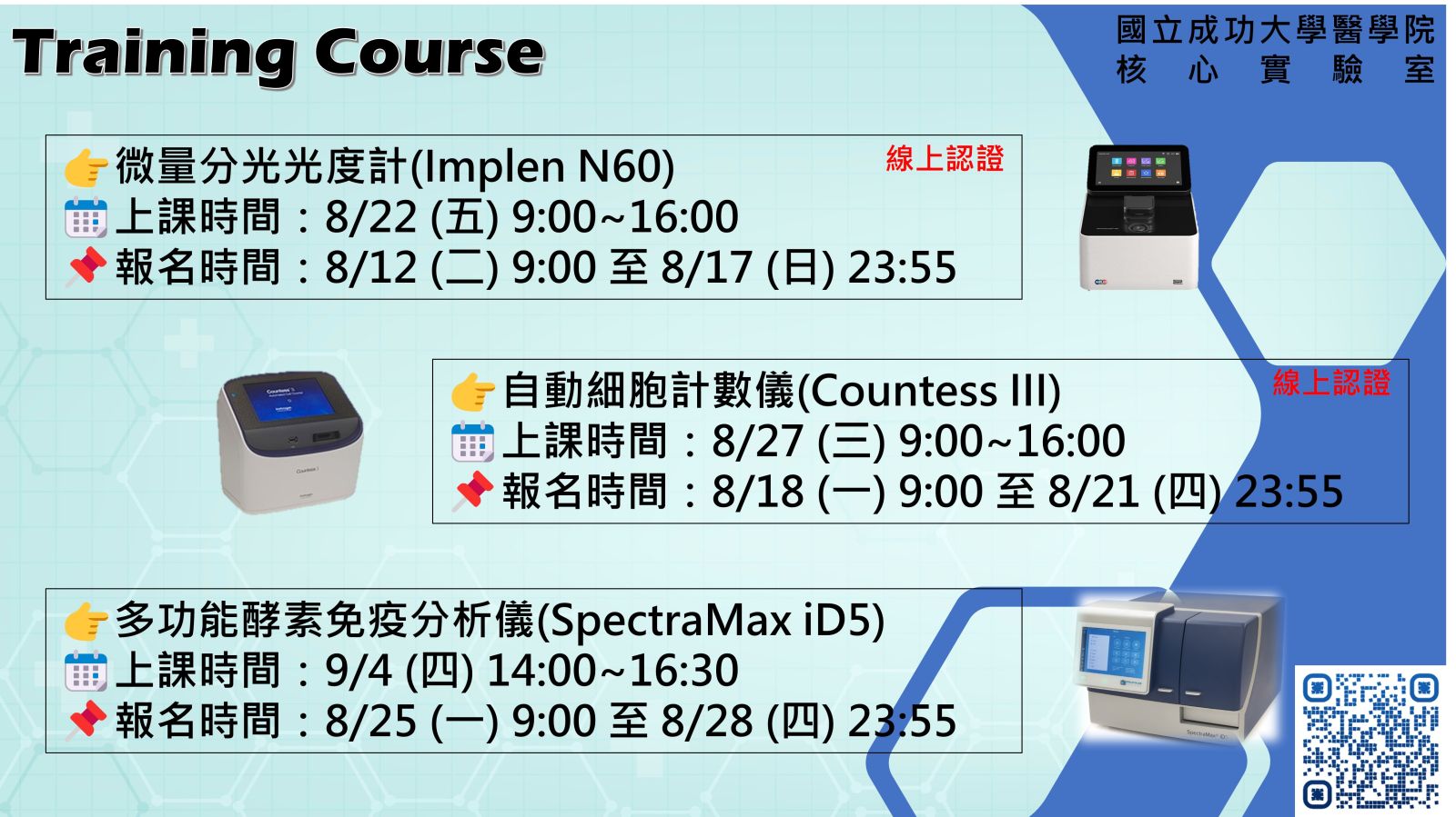 114年10月份醫學院核心實驗室儀器訓練課程: